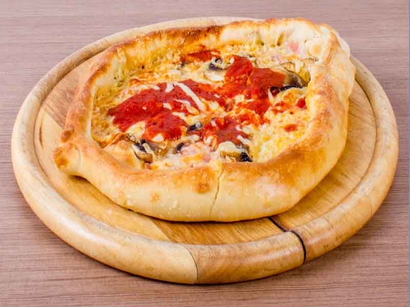 Με σάλτσα ντομάτας, mix τυριών (gouda & edam), ζαμπόν, μπέικον & μανιτάρια