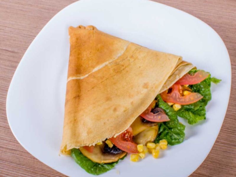 Με σάλτσα ντομάτας, mix τυριών (gouda & edam), φρέσκια ντομάτα, μανιτάρια, πιπεριά πράσινη, κρεμμύδι & καλαμπόκι